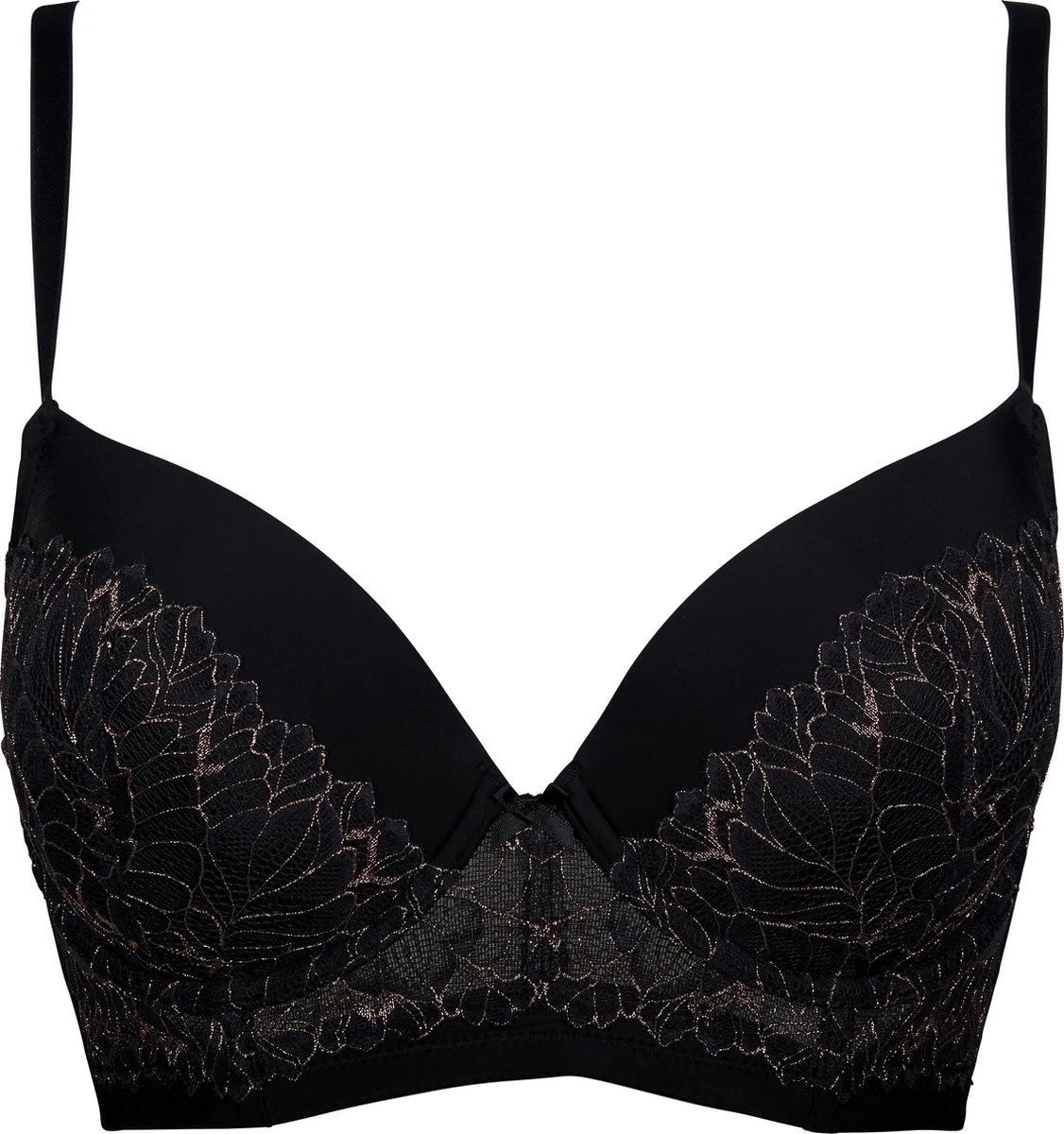 Voorgevormde demi beugelbeha. De zijpanden zijn in micro net zoals een gedeelte van de cup. Het kant geeft een luxe uitstraling door de lurex draad die er in is verwerkt. Er zijn belijningen toevoegd in de zijpanden voor extra versteviging.