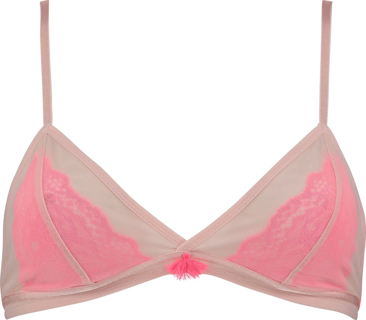 Deze bralette heeft aan de voor- en achterzijde kanten details met daaroverheen mesh stof. De bralette is afgewerkt met een kwastje aan de voorzijde.