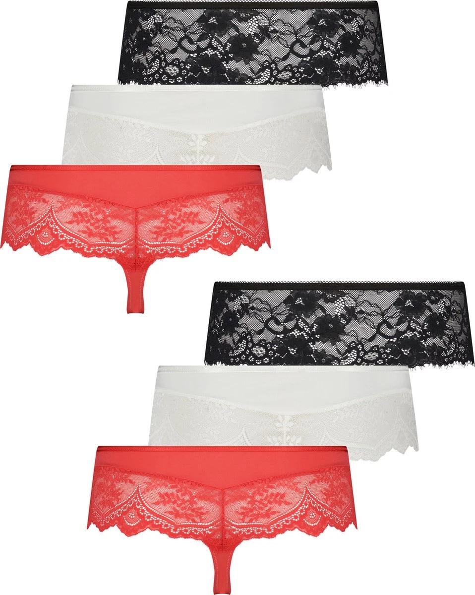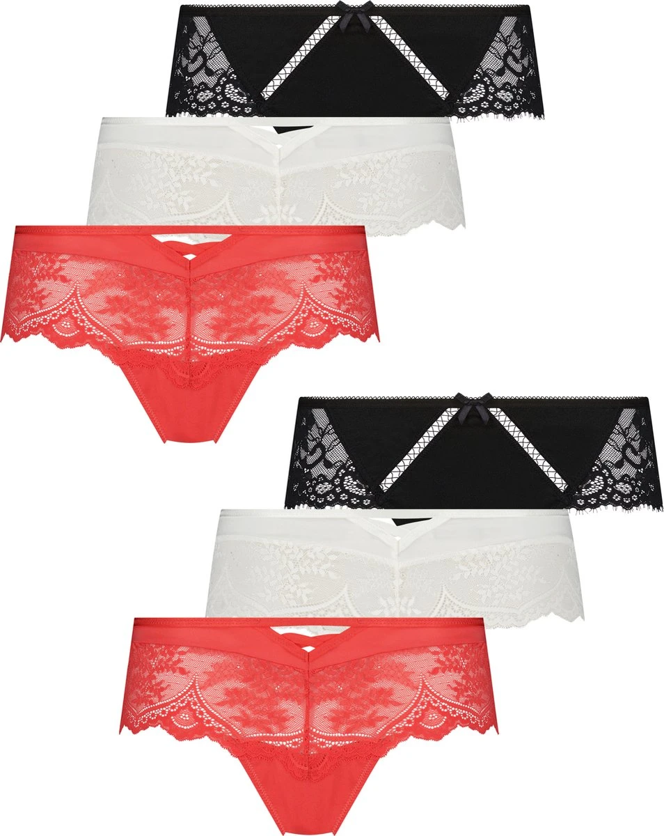 Dit zijn de perfecte slips die altijd goed zijn en die niet mogen ontbreken in jouw kast. De slips hebben kanten randjes en een leuk cut-out detail voorop. Handig verpakt als 6 pack.