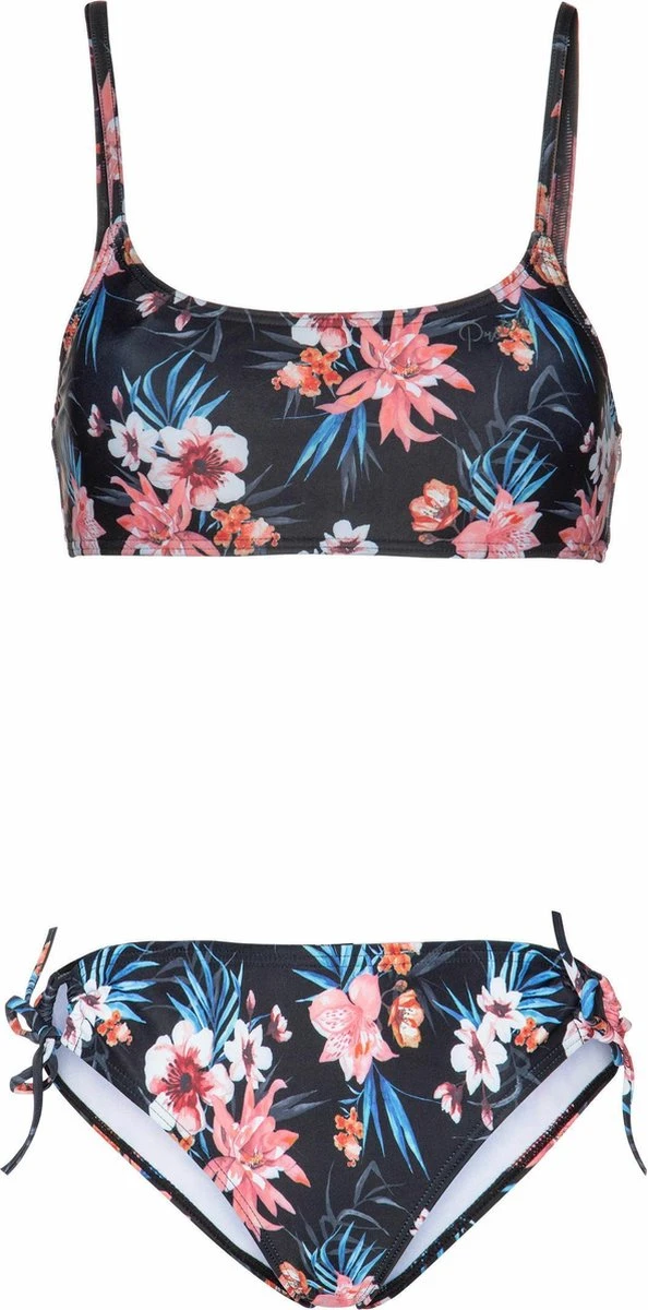 Dit is onze schitterende Elizabel bikini. Deze bikini is bedrukt met een prachtig all-over design uit onze zomercollectie. De schouderbandjes zijn verstelbaar. De uitneembare foam cups zorgen voor iets meer rondingen en wat extra ondersteuning wanneer dat nodig is. Deze foam cups zijn PFC-vrij om het gebruik van deze chemische stof te verminderen en daarmee de schade aan het milieu te beperken. Het regular fit bikinibroekje heeft schattige stoffen strikjes aan de zijkanten. Geniet van je tijd in de zon met de Elizabel bikini van Protest.
