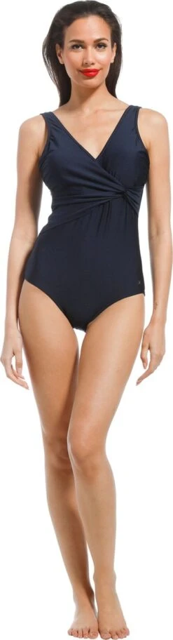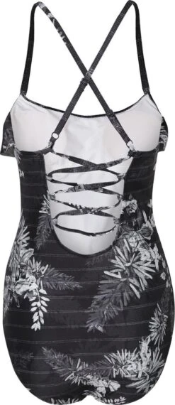 Badpak Dames Met Een Volante Voorkant – Zwart Grijs – L (Valt Klein)