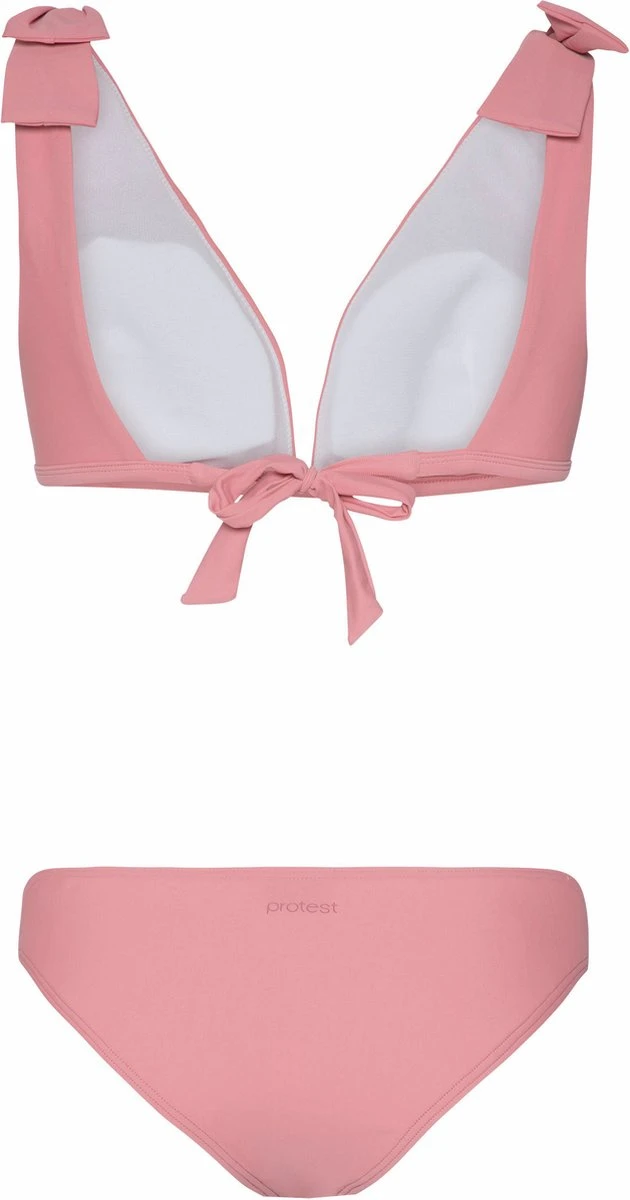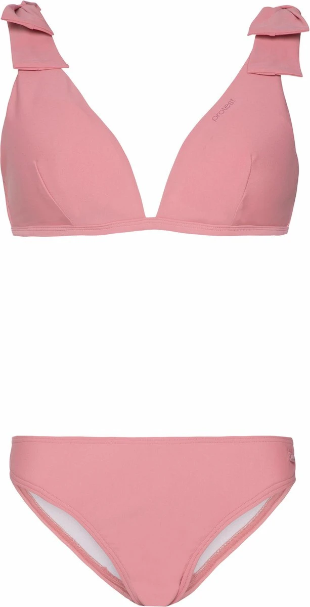 Dit is de PRTSOLA bikini van Protest. De bikinitop heeft een flatterende V-hals. Op de schouders zitten decoratieve strikjes. De sneldrogende, uitneembare foam cups zorgen voor iets meer rondingen en extra ondersteuning wanneer dat nodig is. Het bikinibroekje heeft een regular fit. De stof is PFC-vrij om het gebruik van deze chemische stof te verminderen en daarmee de schade aan het milieu te beperken. Onderscheid je deze zomer in de PRTSOLA van Protest.