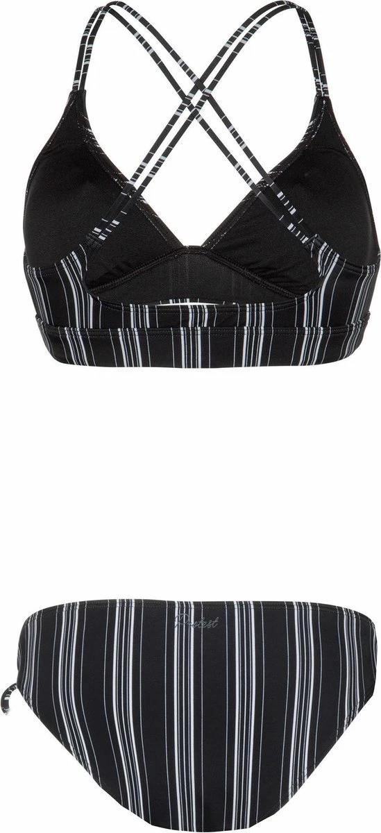 Ontdek de mooie Superbel triangel bikini. Deze bikini heeft een klassiek zwart-wit gestreept patroon. De uitneembare foam cups zorgen voor iets meer rondingen en wat extra ondersteuning wanneer dat nodig is. Deze foam cups zijn PFC-vrij om het gebruik van deze chemische stof te verminderen en daarmee de schade aan het milieu te beperken. De dubbele schouderbandjes zijn aan de achterkant gekruist. Het regular fit bikinibroekje heeft schattige strikjes aan de zijkanten. De Superbel van Protest is de perfecte bikini voor jouw zomer.