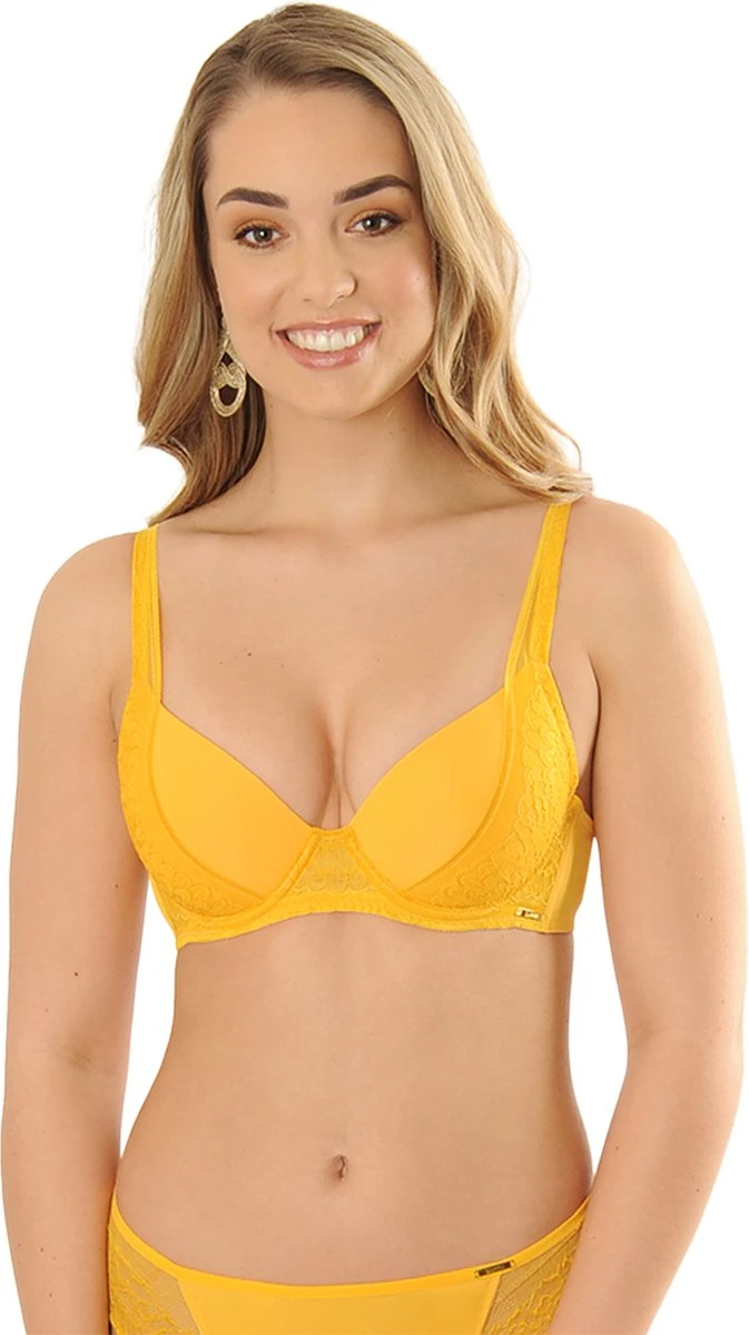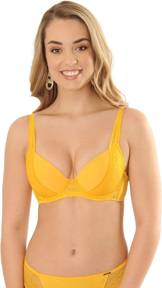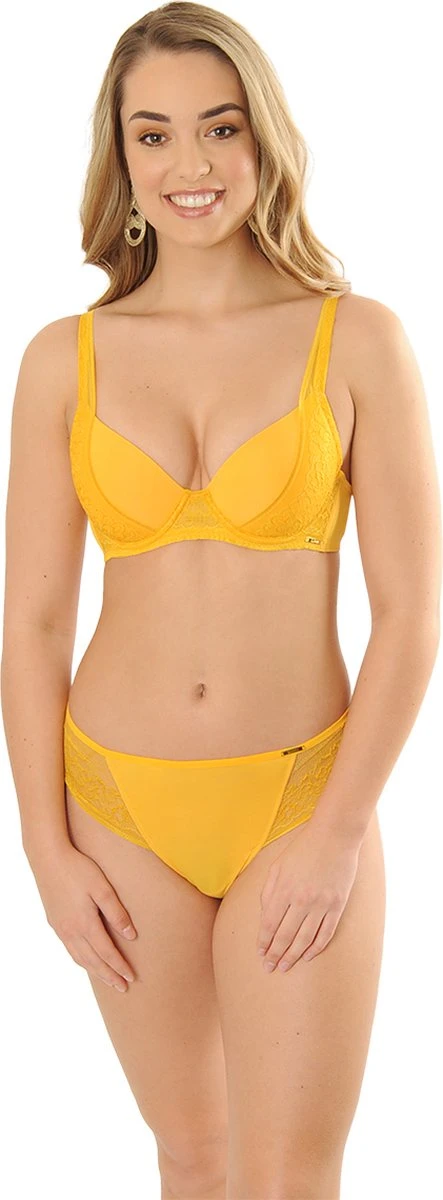 De Diana Voorgevormde T-Shirt BH van SAPPH is afgewerkt met prachtig kant. De Diana T-Shirt BH heeft een voorgevormde cup. Hierdoor heb je altijd een mooie ronde borst onder strakke shirtjes. De cups van de Diana zijn afgewerkt met kant aan de zijkant van de cups wat doorloopt naar de bandjes. De kanten details maken de Diana op en top feminine. Naast deze prachtige voorgevormde bh is er ook een Niet Voorgevormde BH in de Diana serie. Maak je je set compleet met een broekje uit de Diana serie van SAPPH. Bekijk hier de gehele Diana serie van SAPPH , in een mooie gele kleur. De Diana serie is onderdeel van de nieuwe La Dolce Vita collectie van SAPPH. Deze prachtige zomerse collectie is geïnspireerd op de Italiaanse heritage van de Romeinen. Niet alleen de prints maar ook de kleuren zijn volledig geïnspireerd op Italie en ook in deze collectie zijn er een aantal bestsellers terug te vinden. In de Dolce Vita, the Italian dream collectie komt stoer en krachtig terug in combinatie met sexy en delicaat kant. Are you ready to live the Italian dream? Materiaal: 67% Polyamide, 24% Polyester en 9% Elastaan. Ons wasadvies voor lingerie en badmode is altijd handwas. Tip: bestel voor je delicate was een heerlijke fles SOAK , hiermee kun je je was in slechts 15 minuutjes laten “soaken” en bespaar je ook nog eens veel water. SOAK is goed voor je delicate was en voor het milieu!