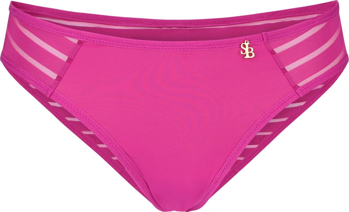 De Iconic Basic Slip Fuchsia van SAPPH komt in een prachtige roze fuchsia kleur. Deze slip heeft een roze voorpand. De heupband heeft een roze mesh streep patroon. Dit patroon loopt helemaal door naar de achterkant van de slip. Aan de voorkant zit ook een klein hangertje. Naast deze prachtige fashion kleur hebben we de Iconic Basic serie van SAPPH ook in basis kleuren en andere modellen. Maak je slip, de Iconic Brief Fuchsia, compleet met een bh uit de Iconic Basic serie van SAPPH. Bekijk hier de gehele Iconic Basic serie van SAPPH , zowel de fashion als de basis kleuren. De Iconic Basic serie in de kleur fuchsia is onderdeel van de nieuwe La Dolce Vita collectie van SAPPH. Deze prachtige zomerse collectie is geïnspireerd op de Italiaanse heritage van de Romeinen. Niet alleen de prints maar ook de kleuren zijn volledig geïnspireerd op Italie en ook in deze collectie zijn er een aantal bestsellers terug te vinden. In de Dolce Vita, the Italian dream collectie komt stoer en krachtig terug in combinatie met sexy en delicaat kant. Are you ready to live the Italian dream? Materiaal: 46% polyamide, 35% polyester, 12% elastaan, 7% katoen. Ons wasadvies voor lingerie en badmode is altijd handwas. Tip: bestel voor je delicate was een heerlijke fles SOAK , hiermee kun je je was in slechts 15 minuutjes laten “soaken” en bespaar je ook nog eens veel water. SOAK is goed voor je delicate was en voor het milieu!