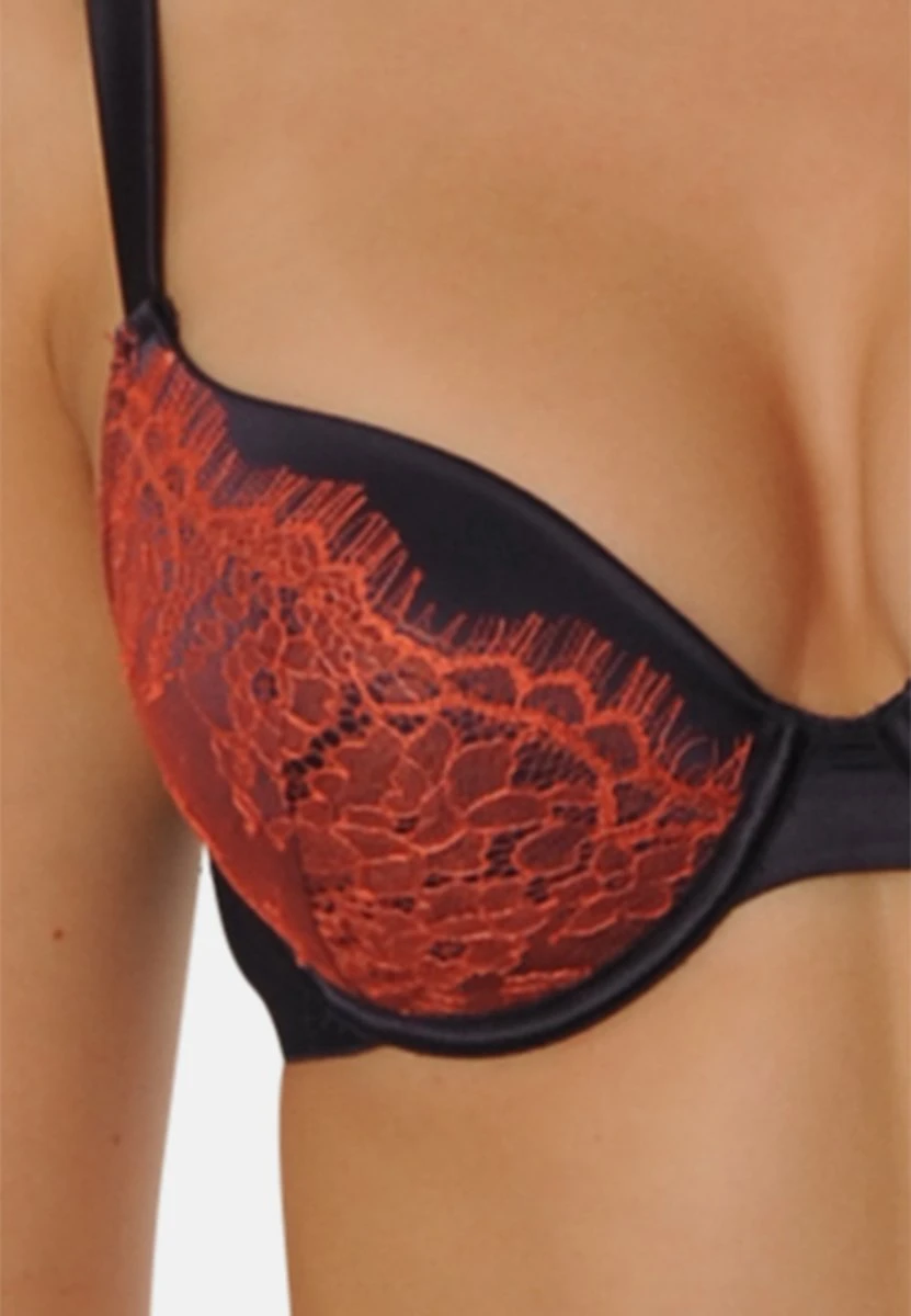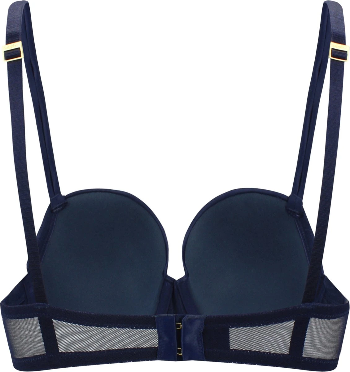 De navy blauwe push up BH met felroze cups van satijn is een echte must have! De BH heeft padded cups die de borsten een maat groter doen lijken en zorgen voor een voller decolleté. De cups zijn bedekt met felroze kant en mesh op de zijkanten en creëren een krachtige look. Ook heeft deze BH cheeky straps van satijn voor een luxe en elegante uistraling. De voorgevormde push up BH zorgt voor een perfecte ondersteuning en een mooi natuurlijk decolleté die je in je kast moet hebben! Combineer deze BH met de Ludivine slip of string om de look helemaal compleet te maken. Ons model is 175cm en draagt maat 75B.