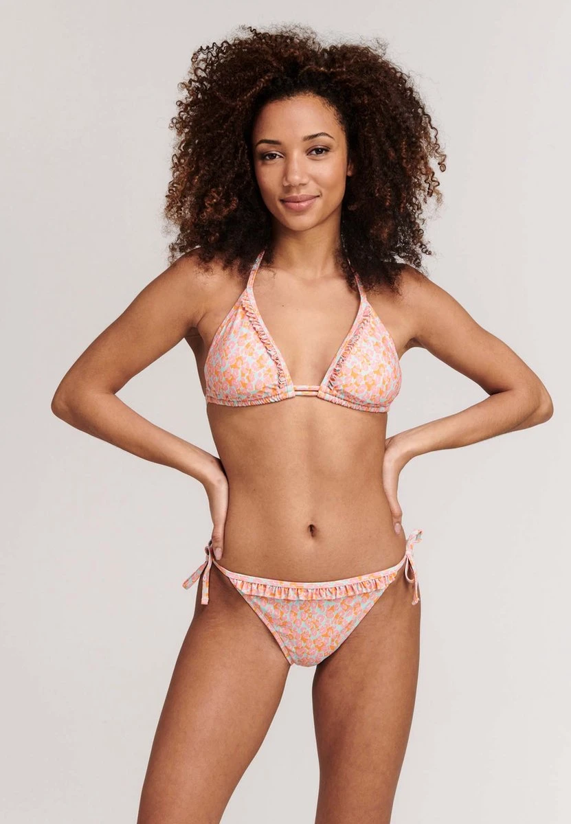 When you want to create an intoxicating effect, just wear this bikini. The subtle ruffle detailing, the side ties with seashell embellishments and this fascinating pattern, are combined with comfortable, adjustable straps, a knitted back closure and a low-cut brief. Wear this beautiful triangle bikini designed with a non-wired top, with or without the removable padding.