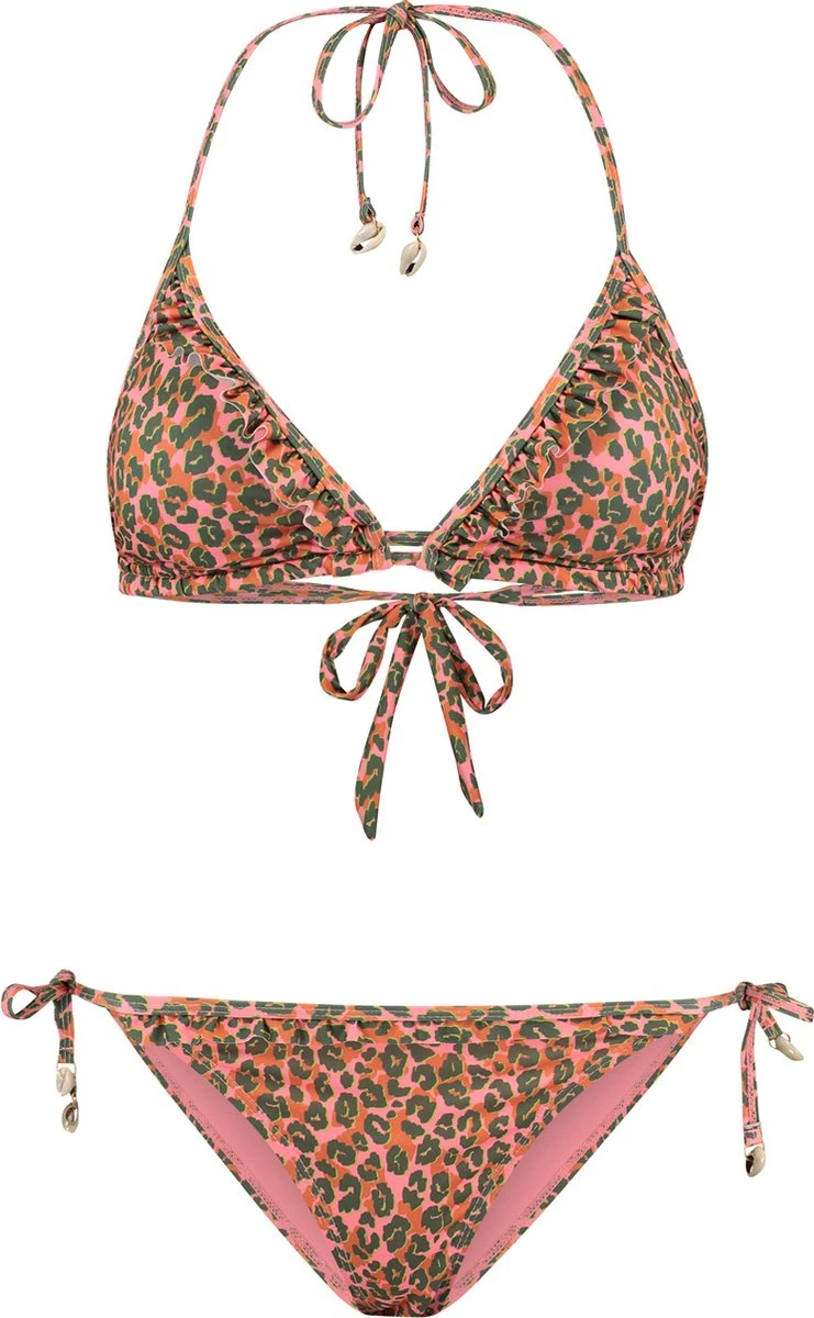 When you want to create an intoxicating effect, just wear this bikini. The subtle ruffle detailing, the side ties with seashell embellishments and this fascinating pattern, are combined with comfortable, adjustable straps, a knitted back closure and a low-cut brief. Wear this beautiful triangle bikini designed with a non-wired top, with or without the removable padding.