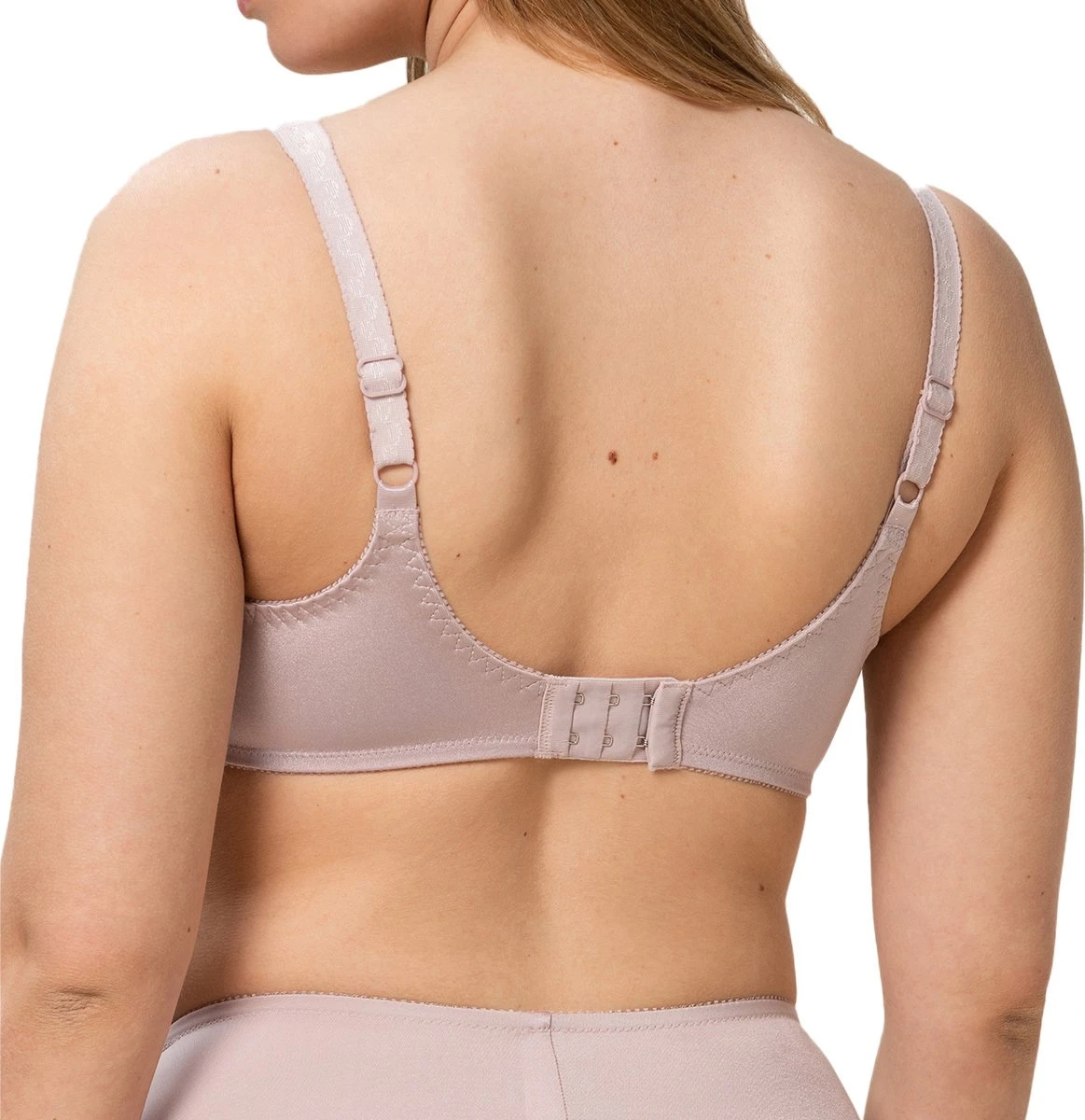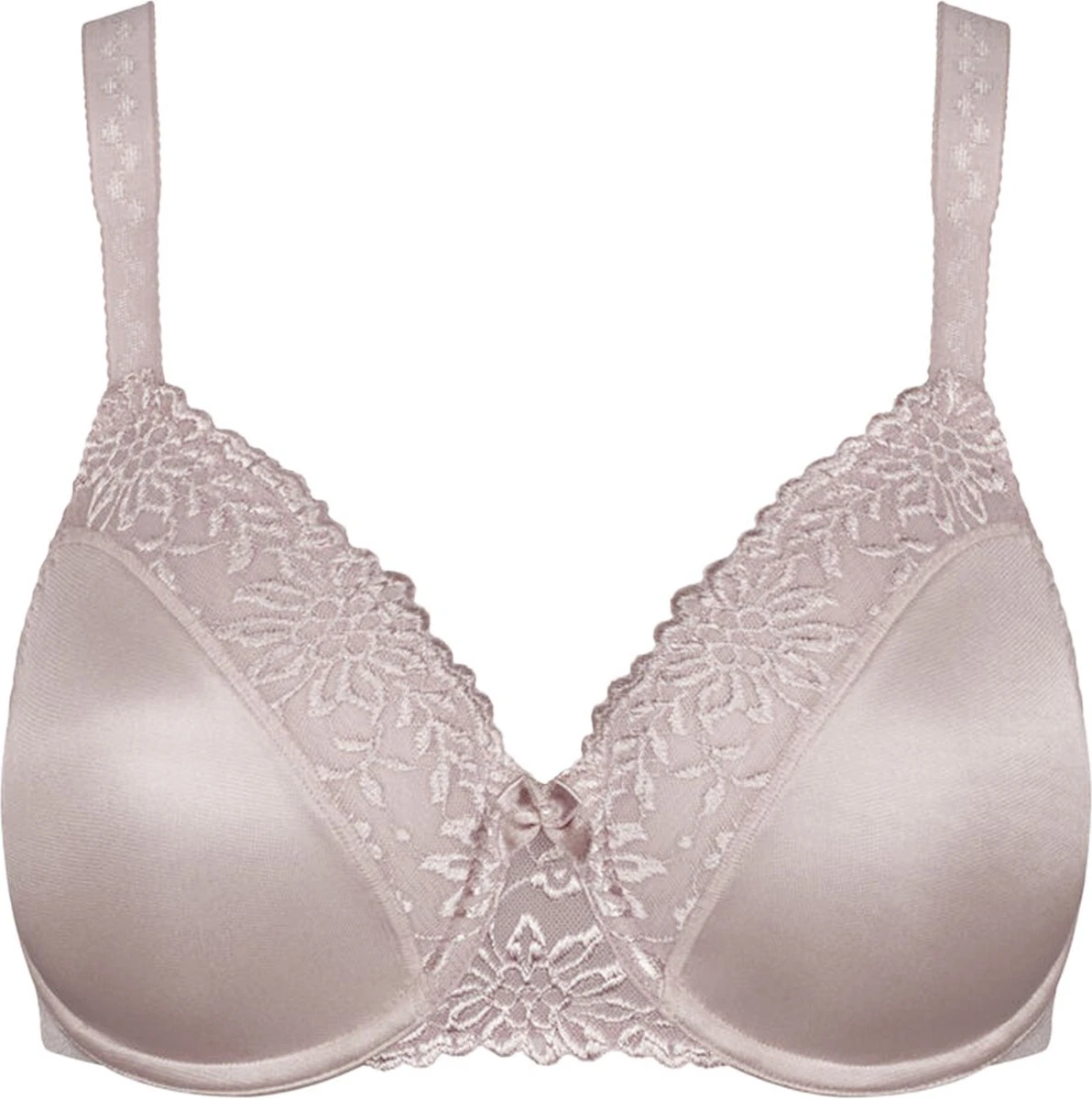 Minimizer beugel-bh met zachte naadloze voorgevormde cups verdeelt zachtjes het borstvolume zonder te vernauwen en vermindert het borstvolume met één cupmaat. Decoratieve zachte bandjes die bij de schouder breder worden ontlasten de schouderpartij.