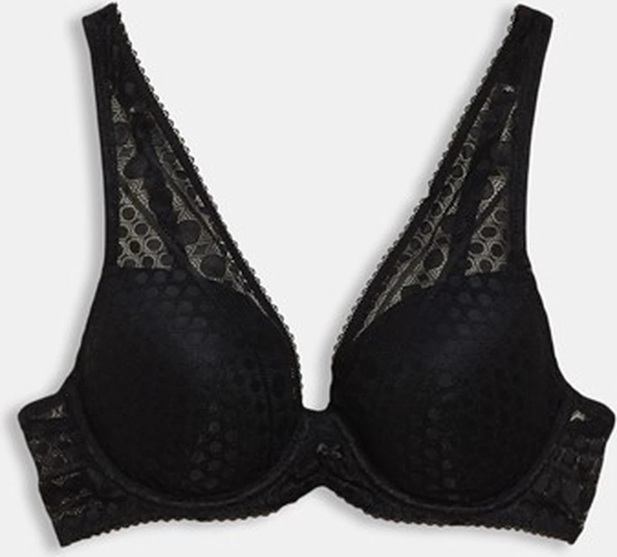 Deze bh geeft een triangel effect, dankzij de cups die overtrokken zijn met kant. Super leuk is deze bh onder een trui, maar ook sexy onder een blouse met een dieper decolleté. ESPRIT bodywear heeft deze bh in het zwart, maar ook in het donker blauw. Bestel jouw favoriete kleur nu online.